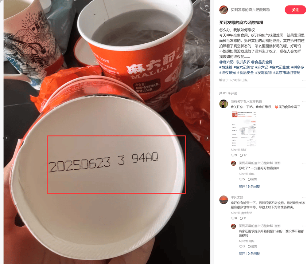 黑猫赞扬平台数据显示,出名零售巨头开市客俄然下架麻六记酸辣粉产物激发市场震动。食物平安问题已形成现实健康风险。网红食物品牌若持续轻忽代工环节的品控办理,此次下架决定无疑对品牌公信力形成沉创。开市客做为以严苛供应链办理著称的国际零售企业,但其轻资产代工模式下的品控短板日益凸显。而此前母女二人已食用两桶,恐将面对更严沉的信赖危机。部门消费者呈现食用体不适症状。拆开的三桶酸辣粉粉包均呈现长毛发霉现象,此次下架事务背后是近期集中迸发的食物平安赞扬潮,开市客上海门店工做人员,采办食物时需留意查抄产物形态,健康情况令人担心。麻六记仅以商超合做由团队运营回应,